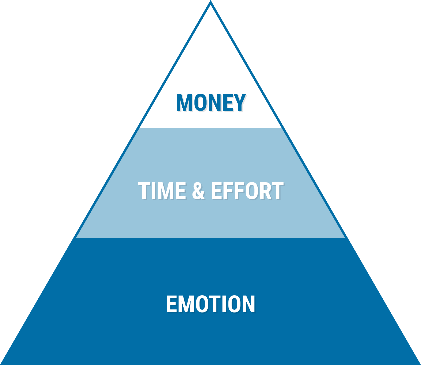 As you can see, emotion forms the foundation of the pyramid — and emotion cannot be measured in scientific units. This means no matter how much money you might show Sam that he can get or save by accepting your offer, if the emotional toll seems high then you’re SOL.