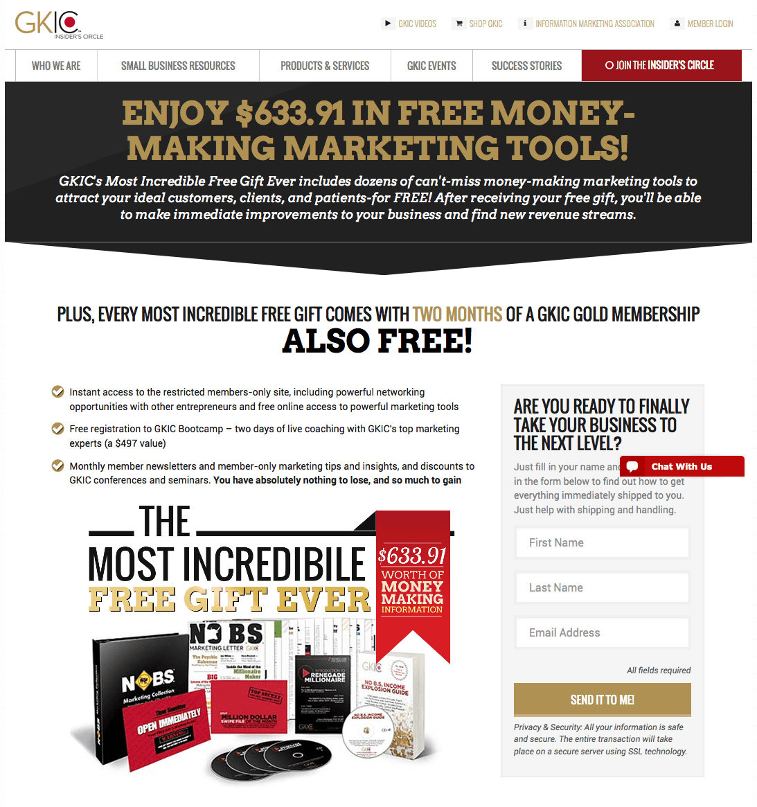 Let’s turn from demonstrating the principle with headlines, to looking at CTAs specifically. Here’s an example from GKIC. You could make this button significantly more precise by perhaps adding only one word: